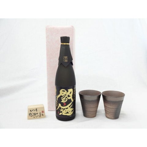 贈り物ギフトセット 榮田 清峰作直筆メッセージ木片付ペアカップセット(陶芸作家安藤嘉規作 日本製萬古焼き) 老松酒造 麦焼酎黒麹・全量麹 閻魔 720ml (大分県)