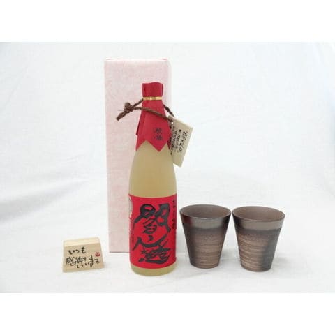 贈り物ギフトセット 榮田 清峰作直筆メッセージ木片付ペアカップセット(陶芸作家安藤嘉規作 日本製萬古焼き) 老松酒造 麦焼酎 閻魔 720ml (大分県)
