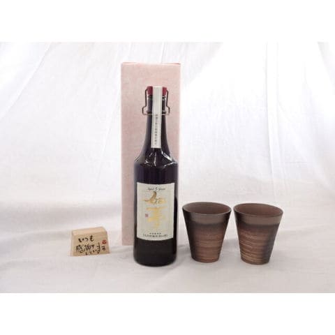 贈り物ギフトセット 榮田 清峰作直筆メッセージ木片付ペアカップセット(陶芸作家安藤嘉規作 日本製萬古焼き) 麦焼酎 如夢 5年貯蔵原酒44° 720ml 井上酒造(大分県)