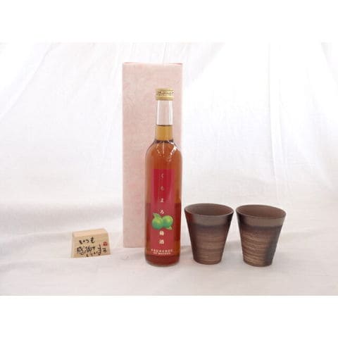 贈り物ギフトセット 榮田 清峰作直筆メッセージ木片付ペアカップセット(陶芸作家安藤嘉規作 日本製萬古焼き) くちまろ 梅酒 500ml濱田酒造(鹿児島県)