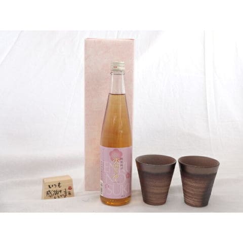 贈り物ギフトセット 榮田 清峰作直筆メッセージ木片付ペアカップセット(陶芸作家安藤嘉規作 日本製萬古焼き) 天空の月 樽熟梅酒 500ml老松酒造(大分県)