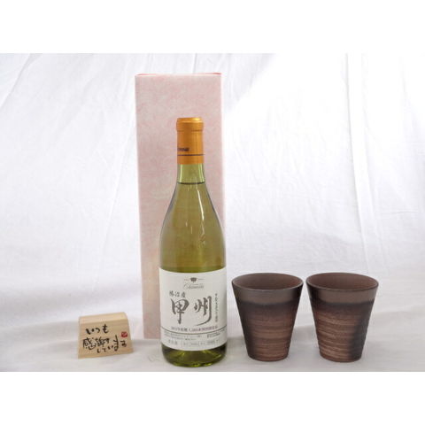 贈り物ギフトセット 榮田 清峰作直筆メッセージ木片付ペアカップセット(陶芸作家安藤嘉規作 日本製萬古焼き) シャンモリワイン 勝沼産甲州 白ワイン 720ml 盛田甲州ワイナリー(山梨県)