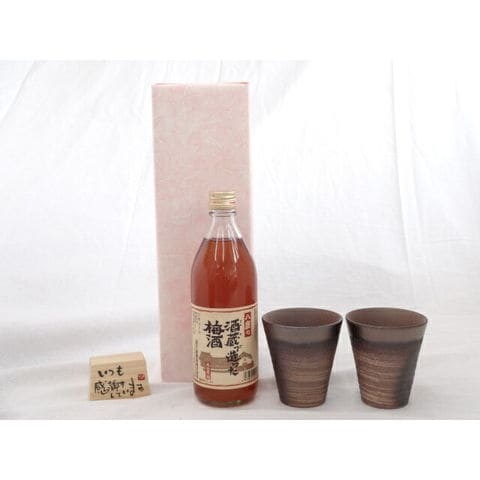 贈り物ギフトセット 榮田 清峰作直筆メッセージ木片付ペアカップセット(陶芸作家安藤嘉規作 日本製萬古焼き) おばあちゃんの梅酒 720ml 中埜酒造(株) (愛知県)