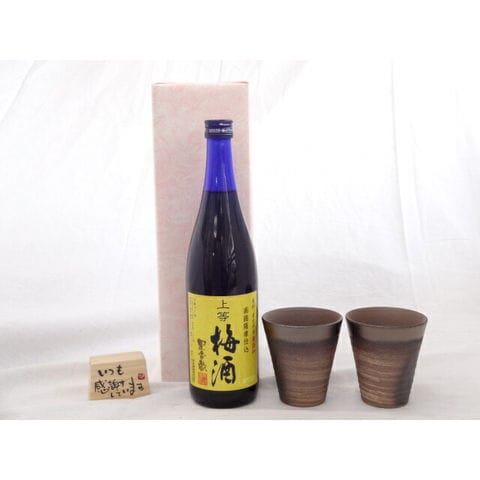 贈り物ギフトセット 榮田 清峰作直筆メッセージ木片付ペアカップセット(陶芸作家安藤嘉規作 日本製萬古焼き) 星舎 無添加 上等梅酒 720ml 本坊酒造(株) (鹿児島県)