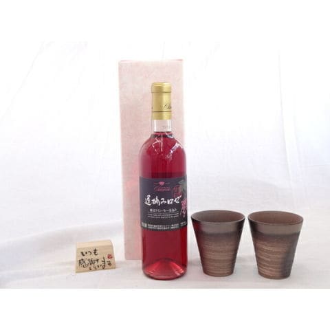 贈り物ギフトセット 榮田 清峰作直筆メッセージ木片付ペアカップセット(陶芸作家安藤嘉規作 日本製萬古焼き) シャンモリワイン 山梨県産ぶどう100% 甲州遅摘みロゼワイン 720ml(山梨県)