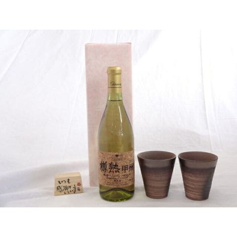 贈り物ギフトセット 榮田 清峰作直筆メッセージ木片付ペアカップセット(陶芸作家安藤嘉規作 日本製萬古焼き) シャンモリ金賞ワイン 山梨県産甲州種ぶどう100%使用 シャンモリ樽熟甲州 白ワイン 720ml 盛田甲州ワイナリー(山梨県)