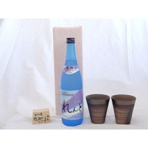 贈り物ギフトセット 榮田 清峰作直筆メッセージ木片付ペアカップセット(陶芸作家安藤嘉規作 日本製萬古焼き) れんと 黒糖焼酎 奄美大島開運 720ml(鹿児島県)
