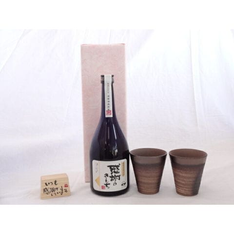 贈り物ギフトセット 榮田 清峰作直筆メッセージ木片付ペアカップセット(陶芸作家安藤嘉規作 日本製萬古焼き) 芋焼酎 感謝のきもち 25度 720ml濱田酒造(鹿児島県)