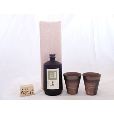 贈り物ギフトセット 榮田 清峰作直筆メッセージ木片付ペアカップセット(陶芸作家安藤嘉規作 日本製萬古焼き) 芋麹焼酎 吉助 白 720ml 霧島酒造(宮崎県)