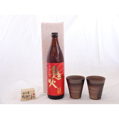 贈り物ギフトセット 榮田 清峰作直筆メッセージ木片付ペアカップセット(陶芸作家安藤嘉規作 日本製萬古焼き) 炭火焼き芋焼酎 鬼火(おにび)720ml 田崎酒造 (鹿児島県)