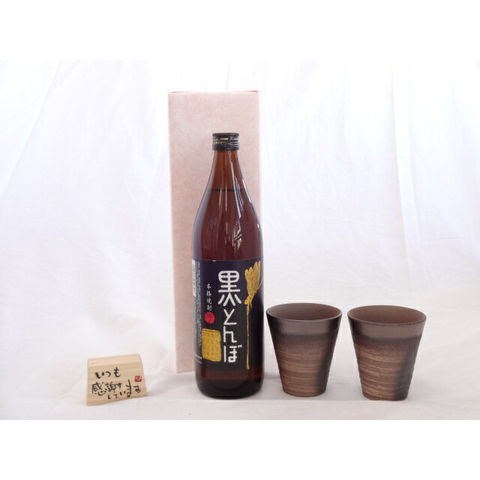 贈り物ギフトセット 榮田 清峰作直筆メッセージ木片付ペアカップセット(陶芸作家安藤嘉規作 日本製萬古焼き) 本格芋焼酎 黒とんぼ 25度 900ml 深野酒造(熊本県)