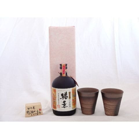 贈り物ギフトセット 榮田 清峰作直筆メッセージ木片付ペアカップセット(陶芸作家安藤嘉規作 日本製萬古焼き) 麦焼酎 十三年熟成 猶薫(なおしげ)720ml 神楽酒造 (宮崎県)