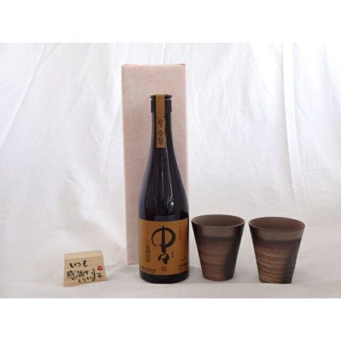 贈り物ギフトセット 榮田 清峰作直筆メッセージ木片付ペアカップセット(陶芸作家安藤嘉規作 日本製萬古焼き) 大麦焼酎 中々 720ml 黒木本店(宮崎県)