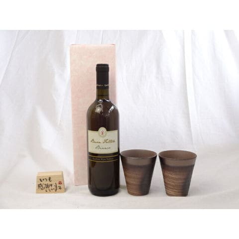 贈り物ギフトセット 榮田 清峰作直筆メッセージ木片付ペアカップセット(陶芸作家安藤嘉規作 日本製萬古焼き) ワイン ブォン・ファットーレ・ビアンコ白 750ml(イタリア)
