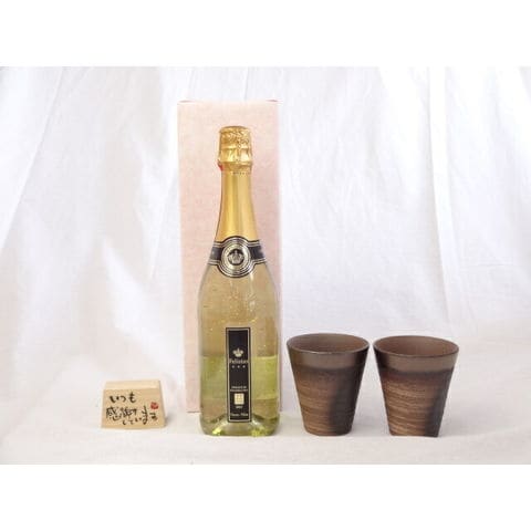 贈り物ギフトセット 榮田 清峰作直筆メッセージ木片付ペアカップセット(陶芸作家安藤嘉規作 日本製萬古焼き) Felistas(フェリスタス)22カラット金箔入りプレミアムスパークワイン750ml(フランス)