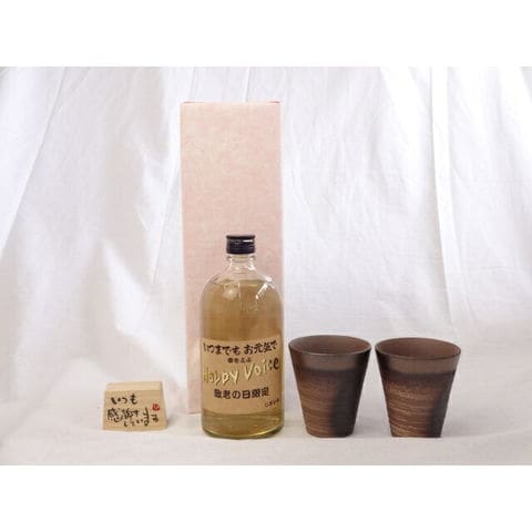 贈り物ギフトセット 榮田 清峰作直筆メッセージ木片付ペアカップセット(陶芸作家安藤嘉規作 日本製萬古焼き) 麦焼酎 長期樫樽貯蔵 じいじの敬老の日限定 720ml(株)福井酒造場(三重県)