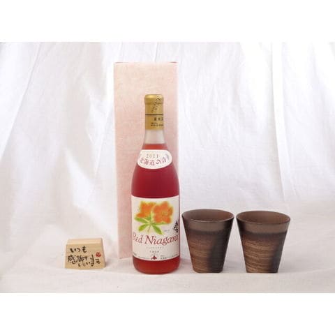 贈り物ギフトセット 榮田 清峰作直筆メッセージ木片付ペアカップセット(陶芸作家安藤嘉規作 日本製萬古焼き)北海道の詩 おたるキャンベルアーリ ロゼワイン(甘口) 750ml(北海道)