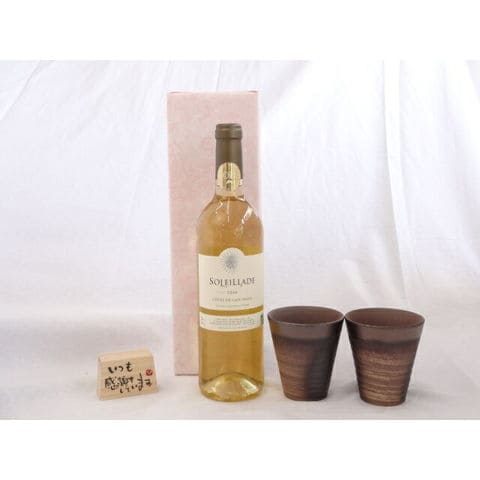 贈り物ギフトセット 榮田 清峰作直筆メッセージ木片付ペアカップセット(陶芸作家安藤嘉規作 日本製萬古焼き) ヴィニョーブル・ジル・ルーヴェ ソレイヤード 白ワイン(フランス)750ml