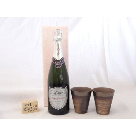 贈り物ギフトセット 榮田 清峰作直筆メッセージ木片付ペアカップセット(陶芸作家安藤嘉規作 日本製萬古焼き) ロジャーグラート カヴァ ドゥミ・セック750mlスパークリングワイン(スペイン)