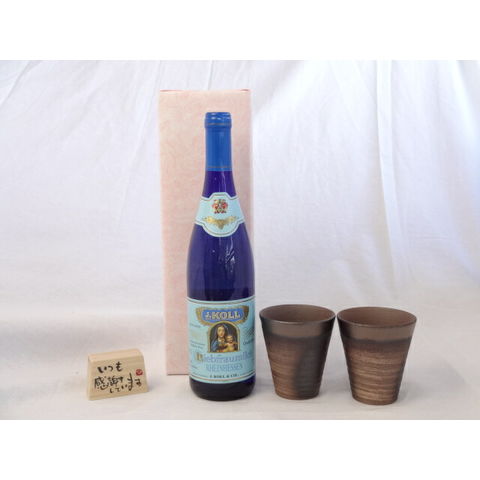 贈り物ギフトセット 榮田 清峰作直筆メッセージ木片付ペアカップセット(陶芸作家安藤嘉規作 日本製萬古焼き) ワイン リープフラウミルヒ 白 750m(ドイツ)