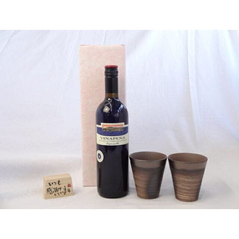 贈り物ギフトセット 榮田 清峰作直筆メッセージ木片付ペアカップセット(陶芸作家安藤嘉規作 日本製萬古焼き) 赤ワイン ヴィーニャ・ペーニャ (スペイン)750ml