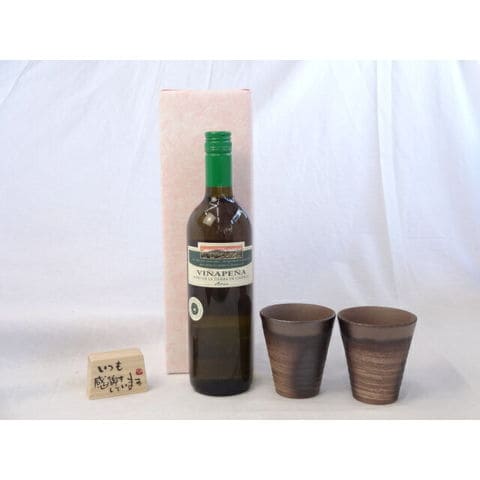 贈り物ギフトセット 榮田 清峰作直筆メッセージ木片付ペアカップセット(陶芸作家安藤嘉規作 日本製萬古焼き) 白ワイン ヴィーニャ・ペーニャ (スペイン)750ml
