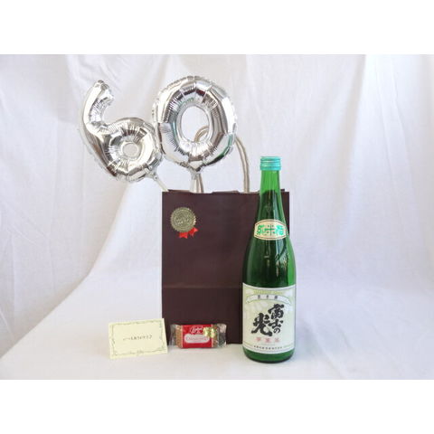 還暦シルバーバルーン60贈り物セット 日本酒 富士の光 純米酒 安達本家酒造 720ml(三重県) メッセージカード付