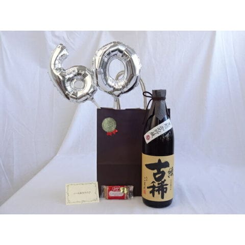 還暦シルバーバルーン60贈り物セット 麦焼酎 綾古稀 (あやこまれ) 黒麹・甕貯蔵 900ml(宮崎県) メッセージカード付