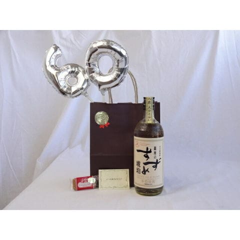 還暦シルバーバルーン60贈り物セット 麦焼酎 銀座のすずめ琥珀(こはく) 八鹿酒造 720ml(大分県) メッセージカード付