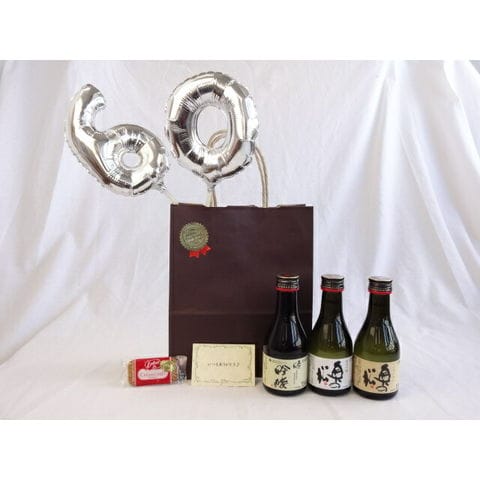 還暦シルバーバルーン60贈り物セット 日本酒 奥の松バラエティ3本セット 180ml×3本(福島県) メッセージカード付
