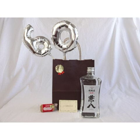 還暦シルバーバルーン60贈り物セット 麦焼酎 原酒 兼八 42度 四ツ谷酒造 720ml(大分県) メッセージカード付