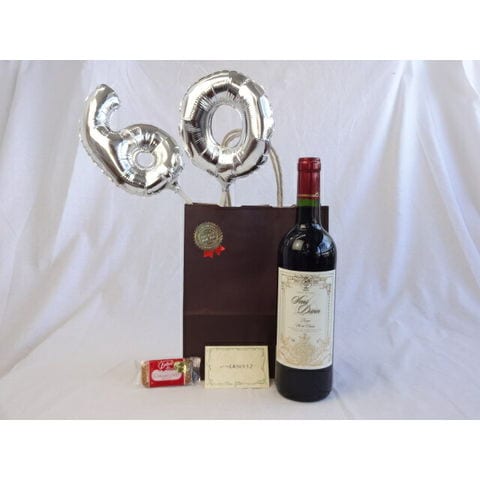 還暦シルバーバルーン60贈り物セット ワイン サン ディヴァン ルージュ750ml(フランス) メッセージカード付