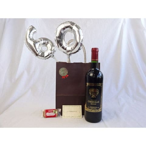 還暦シルバーバルーン60贈り物セット ワイン シェルヴィーユ・ルージュ NV 赤750ml(フランス) メッセージカード付