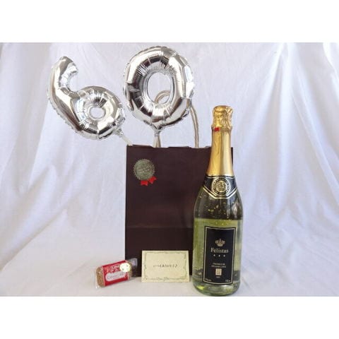 還暦シルバーバルーン60贈り物セット Felistas(フェリスタス)24カラット金箔入りプレミアムスパークワイン750ml(フランス) メッセージカード付