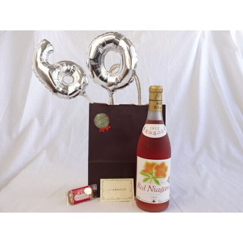 還暦シルバーバルーン60贈り物セット北海道の詩 おたるキャンベルアーリ ロゼワイン(甘口) 750ml(北海道) メッセージカード付