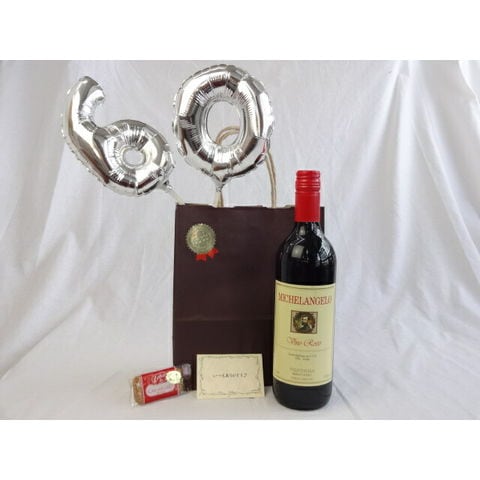 還暦シルバーバルーン60贈り物セット 赤ワイン ミケランジェロ 750ml(イタリア) メッセージカード付