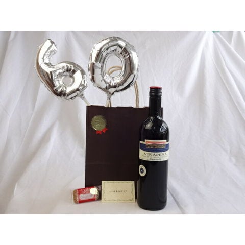 還暦シルバーバルーン60贈り物セット 赤ワイン ヴィーニャ・ペーニャ (スペイン)750ml メッセージカード付