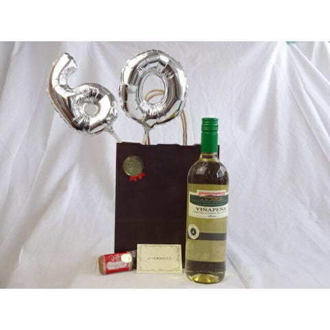 還暦シルバーバルーン60贈り物セット 白ワイン ヴィーニャ・ペーニャ (スペイン)750ml メッセージカード付