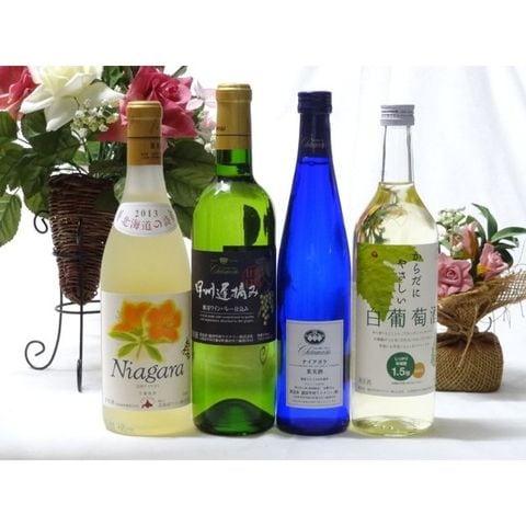 ワインセット 甘口白ワイン4本セット(ナイアガラ 遅摘み白 完熟ナイアガラ からだにやさしい白葡萄酒) 500ml×1本 720ml×2本
