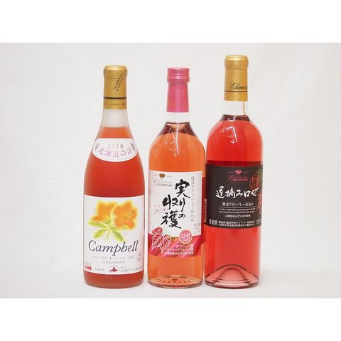 国産甘口ロゼワイン3本セット(北海道おたるプレミアムキャンベル 山梨県実りの収穫 遅摘みロゼ) 国産ぶどう100%使用 720ml×3本