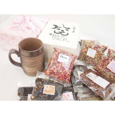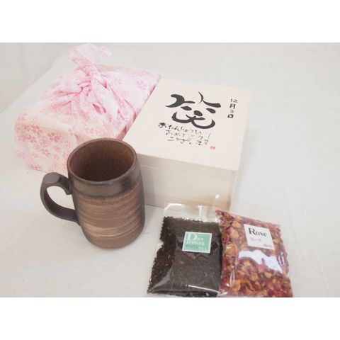 誕生日2月12日セット おたんじょうびおめでとうございます 笑う門には福来たる木箱珈琲マグカップセット(国産備前金彩マグカップとリフレッシュ紅茶茶葉2セット(リフレッシュブレンド20gアールグレイ40g)陶芸作家 安藤嘉規作×デザイン書道家 榮田 清峰作