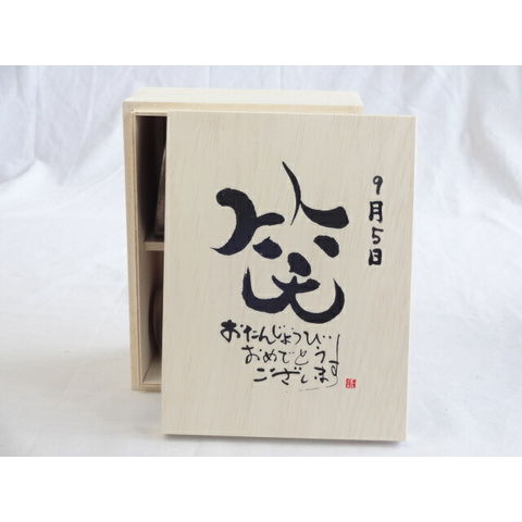 誕生日9月5日セット おたんじょうびおめでとうございます 笑う門には福来たる木箱珈琲マグカップセット(国産備前金彩マグカップとリフレッシュ紅茶茶葉2セット(リフレッシュブレンド20gアールグレイ40g)陶芸作家 安藤嘉規作×デザイン書道家 榮田 清峰作
