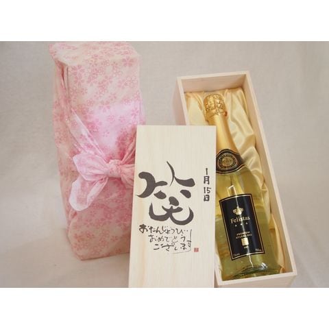 誕生日1月15日セット おたんじょうびおめでとうございます 笑う門には福来たるフェリスタス24カラット金箔入りスパークワイン(ドイツ)750ml デザイン書道家 榮田 清峰作