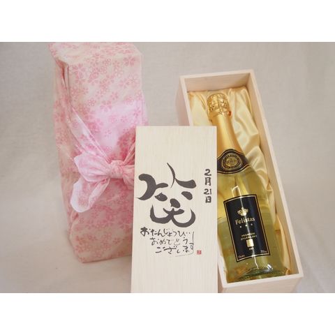 誕生日2月21日セット おたんじょうびおめでとうございます 笑う門には福来たるフェリスタス24カラット金箔入りスパークワイン(ドイツ)750ml デザイン書道家 榮田 清峰作