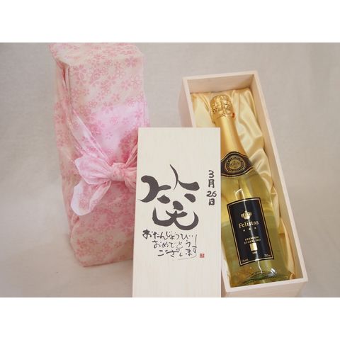 誕生日3月26日セット おたんじょうびおめでとうございます 笑う門には福来たるフェリスタス24カラット金箔入りスパークワイン(ドイツ)750ml デザイン書道家 榮田 清峰作