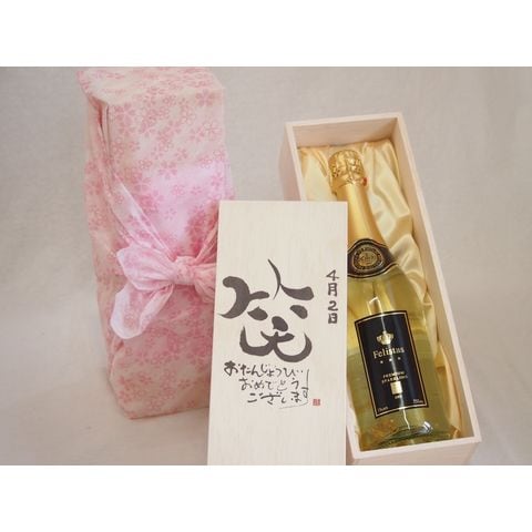 誕生日4月2日セット おたんじょうびおめでとうございます 笑う門には福来たるフェリスタス24カラット金箔入りスパークワイン(ドイツ)750ml デザイン書道家 榮田 清峰作