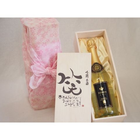 誕生日4月8日セット おたんじょうびおめでとうございます 笑う門には福来たるフェリスタス24カラット金箔入りスパークワイン(ドイツ)750ml デザイン書道家 榮田 清峰作