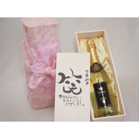 誕生日7月27日セット おたんじょうびおめでとうございます 笑う門には福来たるフェリスタス24カラット金箔入りスパークワイン(ドイツ)750ml デザイン書道家 榮田 清峰作