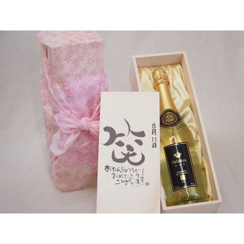 誕生日8月11日セット おたんじょうびおめでとうございます 笑う門には福来たるフェリスタス24カラット金箔入りスパークワイン(ドイツ)750ml デザイン書道家 榮田 清峰作