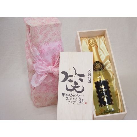 誕生日8月18日セット おたんじょうびおめでとうございます 笑う門には福来たるフェリスタス24カラット金箔入りスパークワイン(ドイツ)750ml デザイン書道家 榮田 清峰作